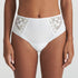 Elegant full briefs with embroidery at the hips and a sheer tulle triangle at the back. Summery White looks fabulous with trendy, colorful accents, like neon yellow or fresh lilac.