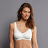 Powerful, yet airily lightweight! The underwire free bra with prosthesis pockets features exclusive jacquard material that not only offers gentle support, but also regulates the skin climate with its breathable structure. Shimmering dots and delicate embroidery add fresh accents to the purist design of this mastectomy bra. The prosthesis pockets are made of soft, stretchy tulle and are particularly gentle on the skin. It is a perfect match for high-waist briefs+.