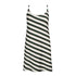 Summery striped dress with straight straps. Malachite is a bold striped print in green, natural, and gold.