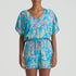 Want to pair your swimwear with a light accessory? This jumpsuit has flowy butterfly sleeves and is low-cut on the front and back. Tie the ribbon around your waist like a belt for a more blouse-like effect. Ocean Swirl is a groovy mix of colors that evokes a nostalgic 80s vibe while being completely on-trend today.