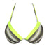 Треугольное бикини с легким эффектом пуш-ап и неоново-желтой отделкой, подчеркивающей вырез. С изящными бретельками-спагетти, завязывающимися на шее, и застежкой сзади. Изготовлено на 37% из переработанной пряжи. Комбинируйте модный змеиный принт, полоски и неоново-желтый цвет и передайте привет Yellow Flash!